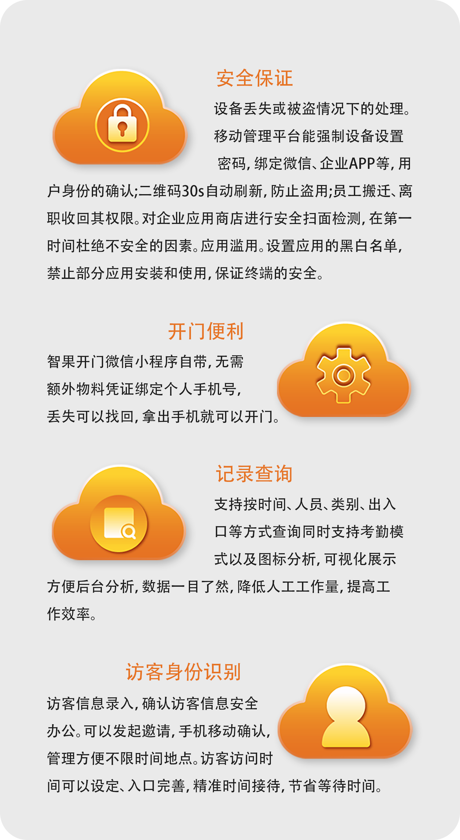 可支持各种平台的移动终端,同时支持在线扫码和离线扫码两种模式,可以通过手机预约访客和查看记录。